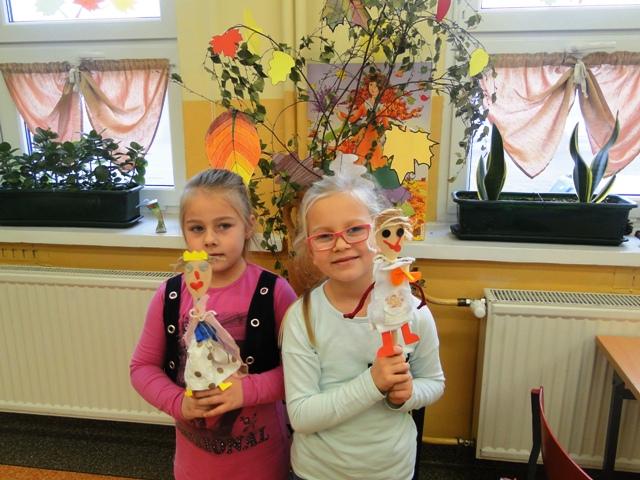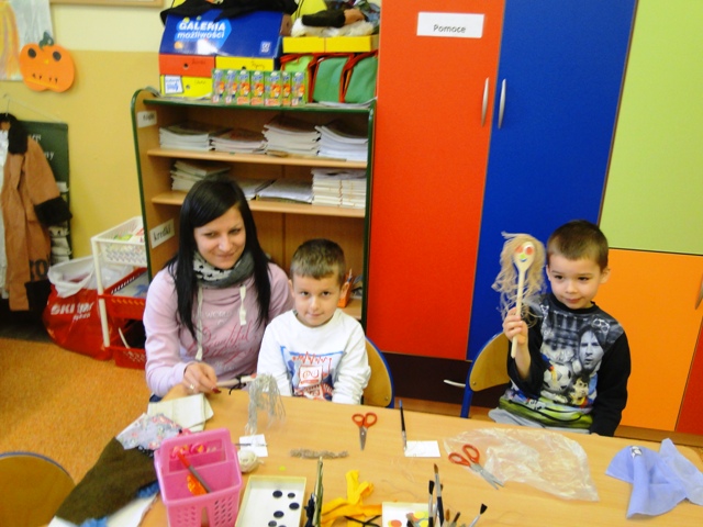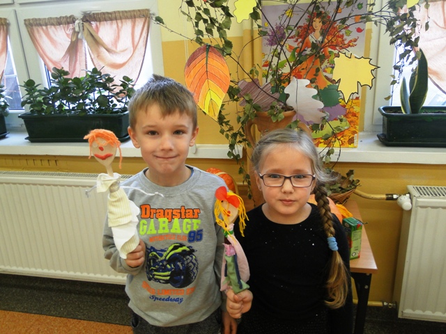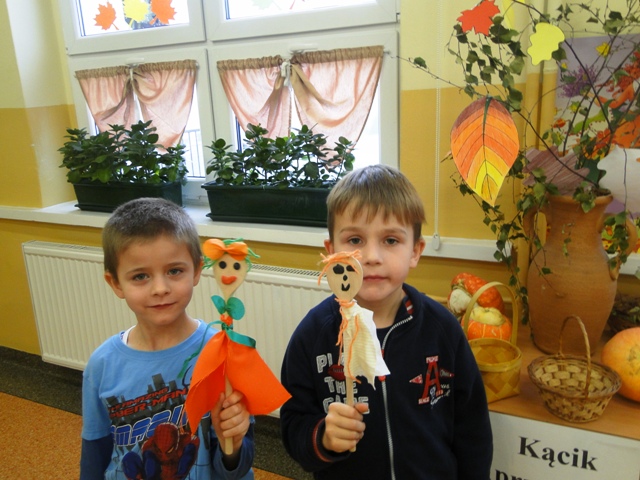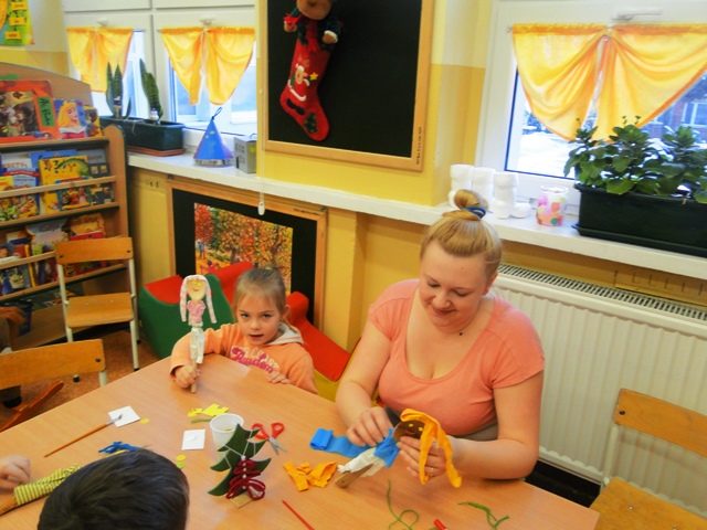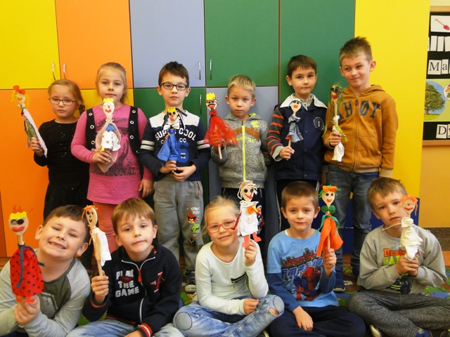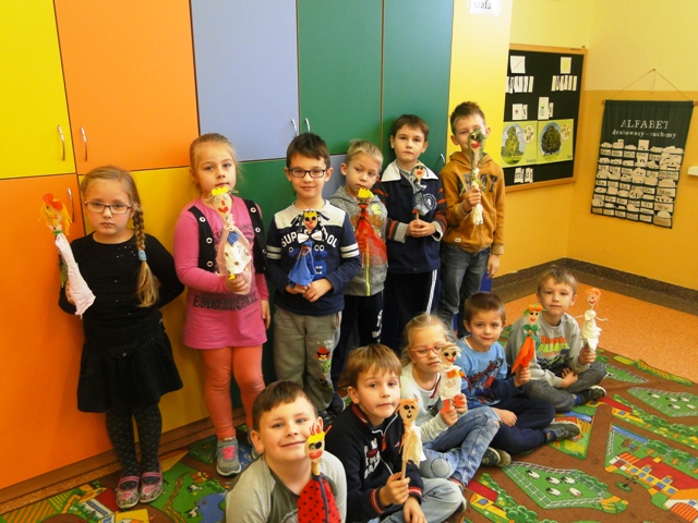 Nastepnego dnia pierwszacy wykonywali kukiełki z drewnianych łyżek.
