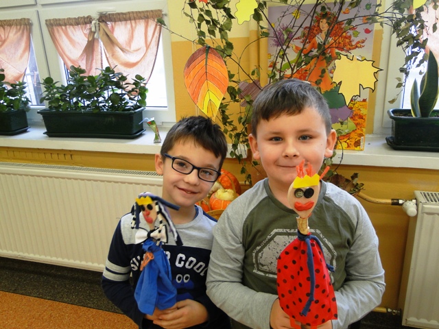 Również dzieci z odddziału przedszkolnego po obejrzeniu przedstawienia teatralnego w Zblewie postanowiły samodzielnie wykonać kukiełki. W tym celu zaprosiły rodzicó na zajęcia dydaktyczne.