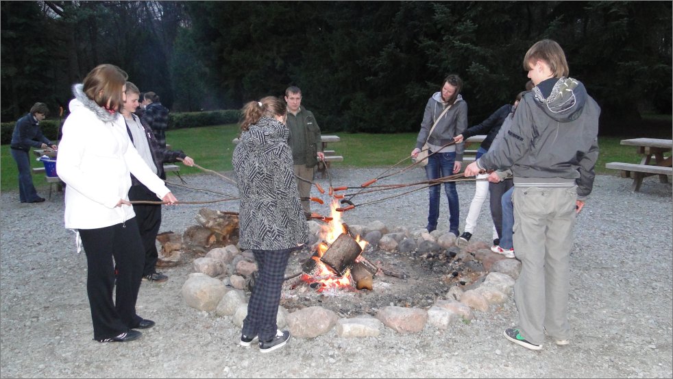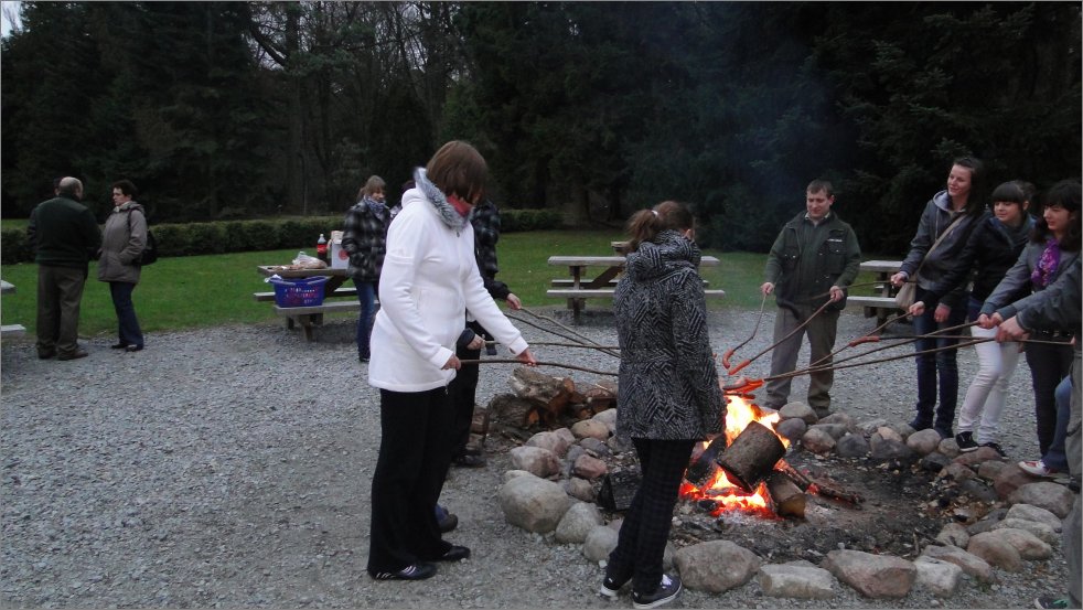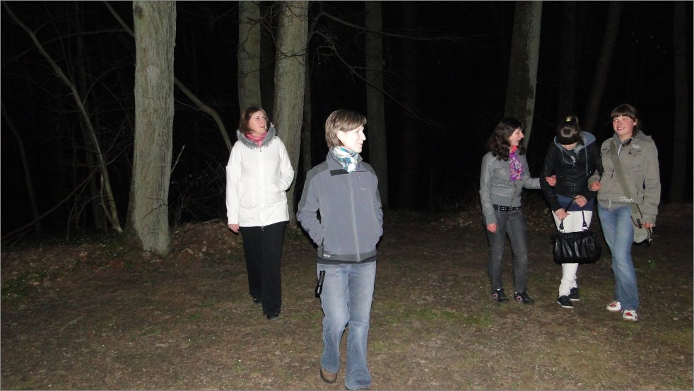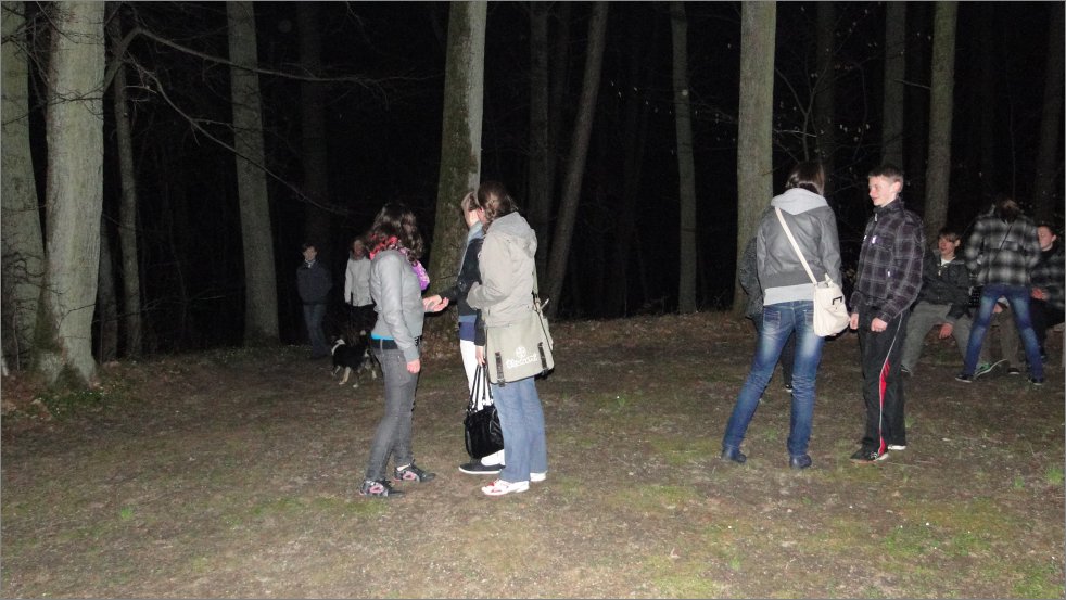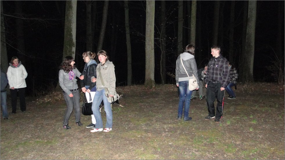 Głównym celem spotkania było nasłuchiwanie sów. Zajęcia rozpoczęły się interesującą prezentacją multimedialną na temat sów, które można spotkać na naszych terenach. Panowie: Piotr Dorawa (Leśniczy Leśnictwa Wirty), Jakub Piechowiak (Podleśniczy Leśnictwa Wirty) i Andrzej Tomana (Nadleśnictwo Kaliska) przybliżyli gimnazjalistom odgłosy: puszczyka, włochatki i uszatki. Przed wyjściem w teren uczniowie ze smakiem zjedli pierwsze w tym roku kiełbaski pieczone w ognisku. O 20.00 poszukiwacze wyruszyli na spotkanie z sową. Nasłuchiwanie zakończyło się niestety niepowodzeniem. Gimnazjalistom nie udało się "wytropić" sów. Najważniejsze jednak były dobre chęci.
