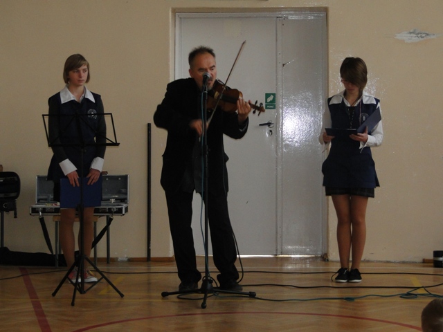 Dnia 10. listopada na pierwszej godzinie lekcyjnej odbył się koncert, który upamiętnił Dzień Odzyskania Niepodległości przez Polskę. Na samym początku gimnazjalistki: Klaudia Dąbrowska i Patrycja Wróblewska zapoznały uczniów z dziejami Polski za czasów rozbiorów. Następnie głos zajęli muzycy. Panowie zagrali utwory znanych kompozytorów i przybliżyli nam ich postawy w tych trudnych dla Polski czasach. Koncert okazał się ciekawą lekcją historii i muzyki. Nauka połączona z muzyką cieszyła się bardzo dużym zainteresowaniem młodych widzów. Koncert przepleciony był konkursami i zabawami. Na długo pozostanie w naszej pamięci zabawa w „Marynarzy i Syrenki”, w której z ochotą wzięli udział uczniowie wraz z nauczycielką Panią Gizelą. Na pożegnanie zostały wykonane utwory Ani Wyszkoni i zespołu Feel. Wszystko odbyło się w miłej atmosferze. Koncert podobał się uczniom. Cieszymy się, że muzycy z Gdyni zaszczycili nas swoimi odwiedzinami , świetnie się bawiliśmy- za co serdecznie dziękujemy.