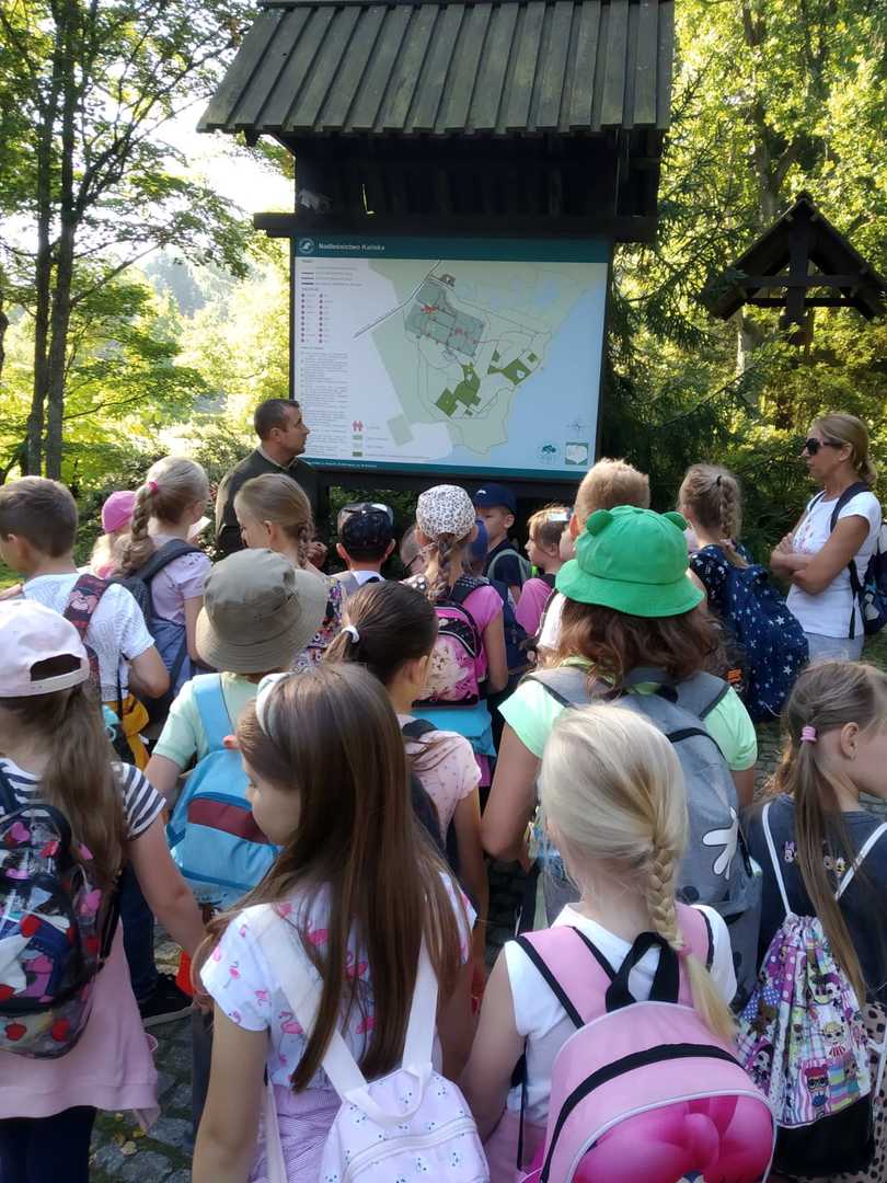 W piątek 10 września dzieci z klas I-III korzystając z pięknej, letniej jeszcze pogody, wybrały się na wycieczkę do Arboretum w Wirtach. W ogrodzie dendrologicznym spotkaliśmy się z leśnikiem, który bardzo ciekawie opowiadał o swojej pracy. Podziwialiśmy wielkie i stare drzewa, jezioro na tarasie widokowym, poznaliśmy historię tajemniczego grobu. Był czas na posiłek i zabawy. Do szkoły wróciliśmy zmęczeni, ale zadowoleni. Na pewno jeszcze odwiedzimy arboretum.