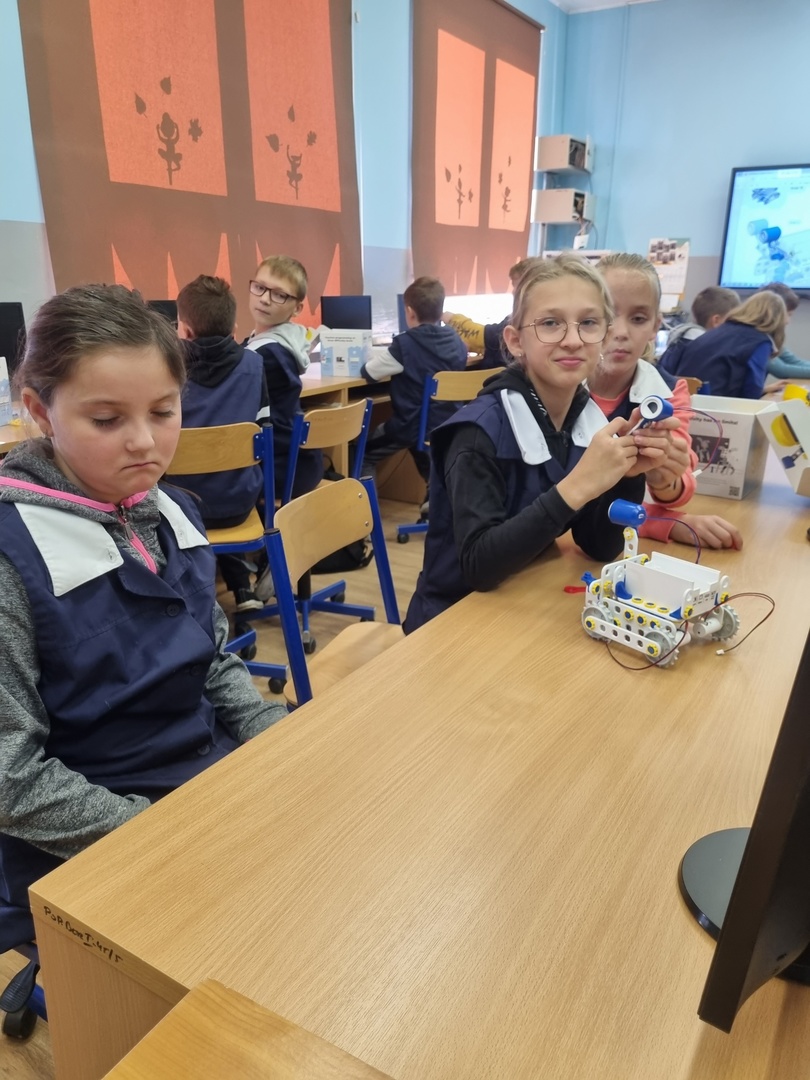 Budowanie robotów wymagało od uczniów skupienia, kreatywności oraz umiejętności współpracy w grupie. Lekcje ze Skribotem sprawiły wszystkim wiele radości i były znakomitą okazją do wspólnej zabawy.