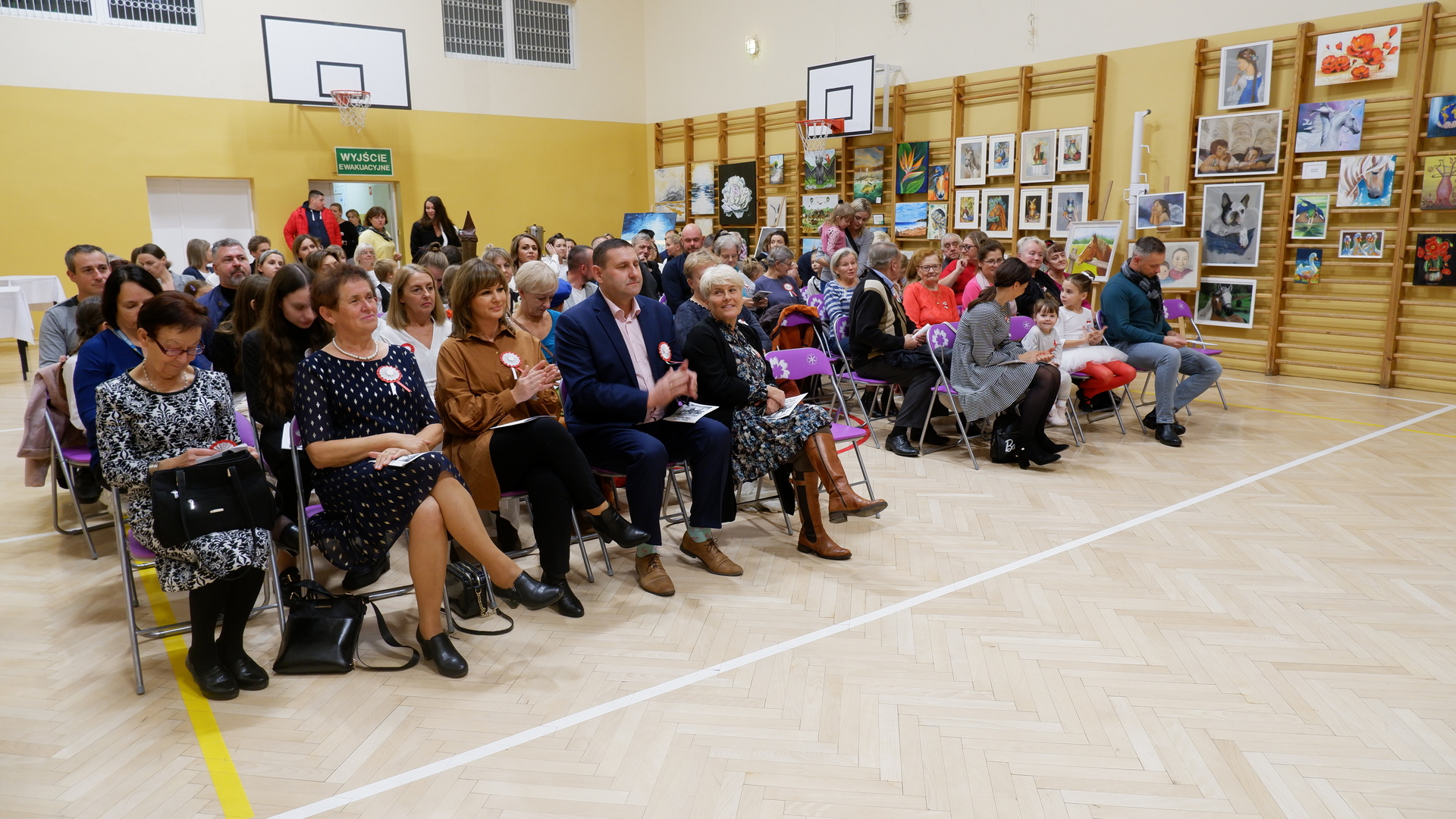 Pani Dyrektor Beata Kornela powitała wszystkich przybyłych gości, a wśród nich: Wójta Gminy Lubichowo Pana Andrzeja Toczek, księdza proboszcza parafii Borzechowo Adama Kapelusza, radnego Rady Gminy Zblewo Pana Janusza Czubek, emerytowaną Panią Dyrektor Marię Tomana wraz z innymi emerytowanymi nauczycielami i pracownikami szkoły, sołtysa wsi Borzechowo Panią Renatę Klimowicz, przewodniczącą Rady Rodziców Panią Justynę Możdżeń, emerytowaną pracownicę biblioteki w Borzechowie Panią Hannę Rożek i obecną Panią Bożenę Trawicką, opiekuna Gminnego Zespołu Regionalnego „Lubichowskie Kociewiaki” Panią Bogumiłę Fiałkowską, Pana Sylwestra Klamanna i jego Grupę Malarską prowadzoną przy Gminnym Ośrodku Kultury w Lubichowie.