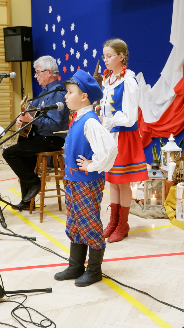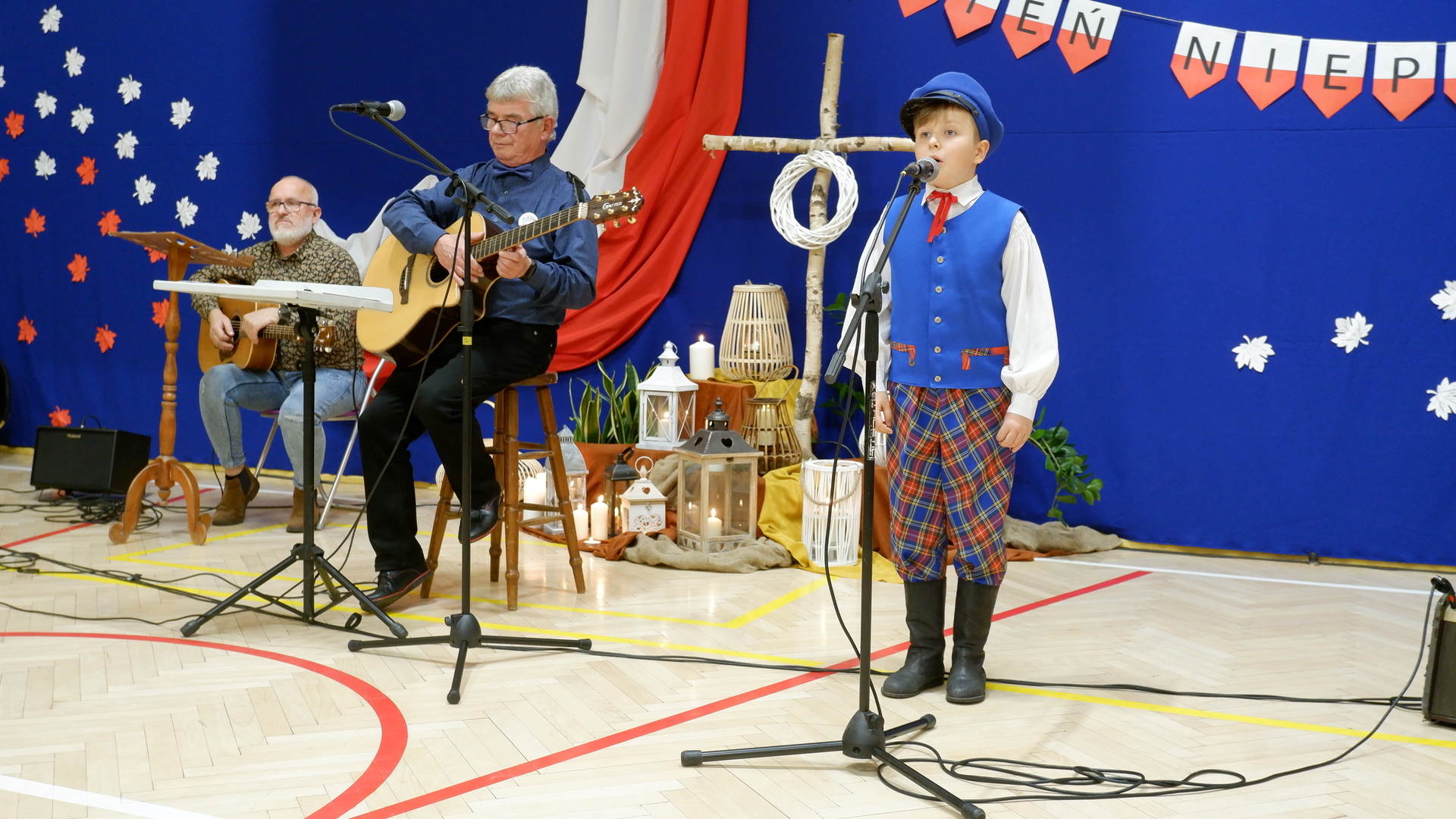 Pieśni patriotyczne, do których wracamy przy okazji święta odzyskania niepodległości, mają szczególne znaczenia dla historii narodu. Stanowią rodzaj kroniki, która rejestruje wszystkie najważniejsze i najbardziej podniosłe wydarzenia z przeszłości, mające kluczowe znaczenie dla kraju i obywateli. Wspólnie wykonano m.in. „Piechotę”, „Wojenko, wojenko”, „Przybyli ułani pod okienko”, „O mój rozmarynie”,” Polskie kwiaty” – ulubioną pieśń patrona szkoły Ojca Flawiana Słomińskiego oraz na zakończenie „Boże, coś Polskę”.