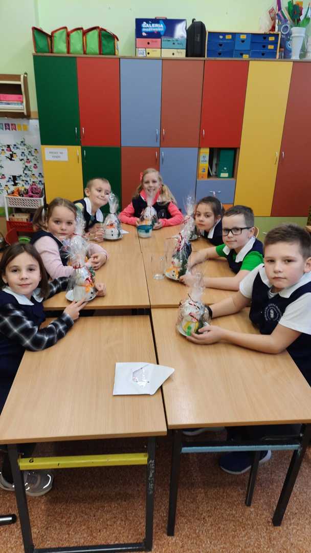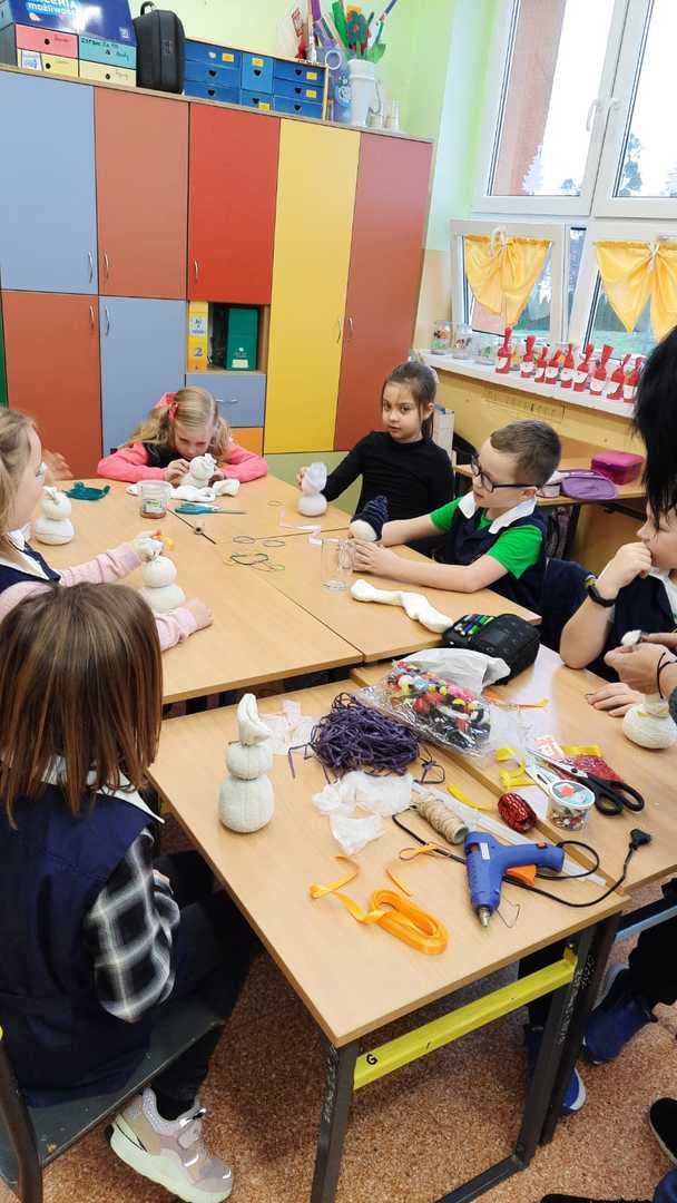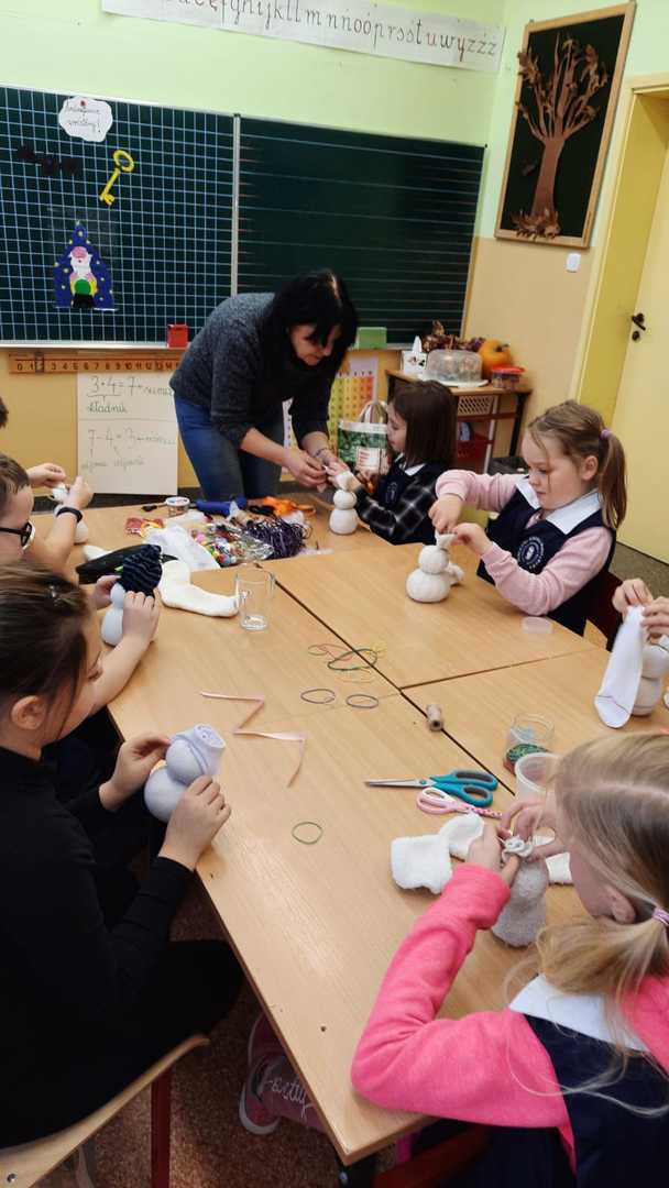 Klasa II zaprosiła panią Wiesławę Sender na zajęcia plastyczne. Wykonaliśmy piękne bałwanki, które mamy zamiar przeznaczyć na sprzedaż na stoisku mikołajkowym. Bardzo dziękujemy pani Wiesi za zaangażowanie i pomysłowość wykonania.