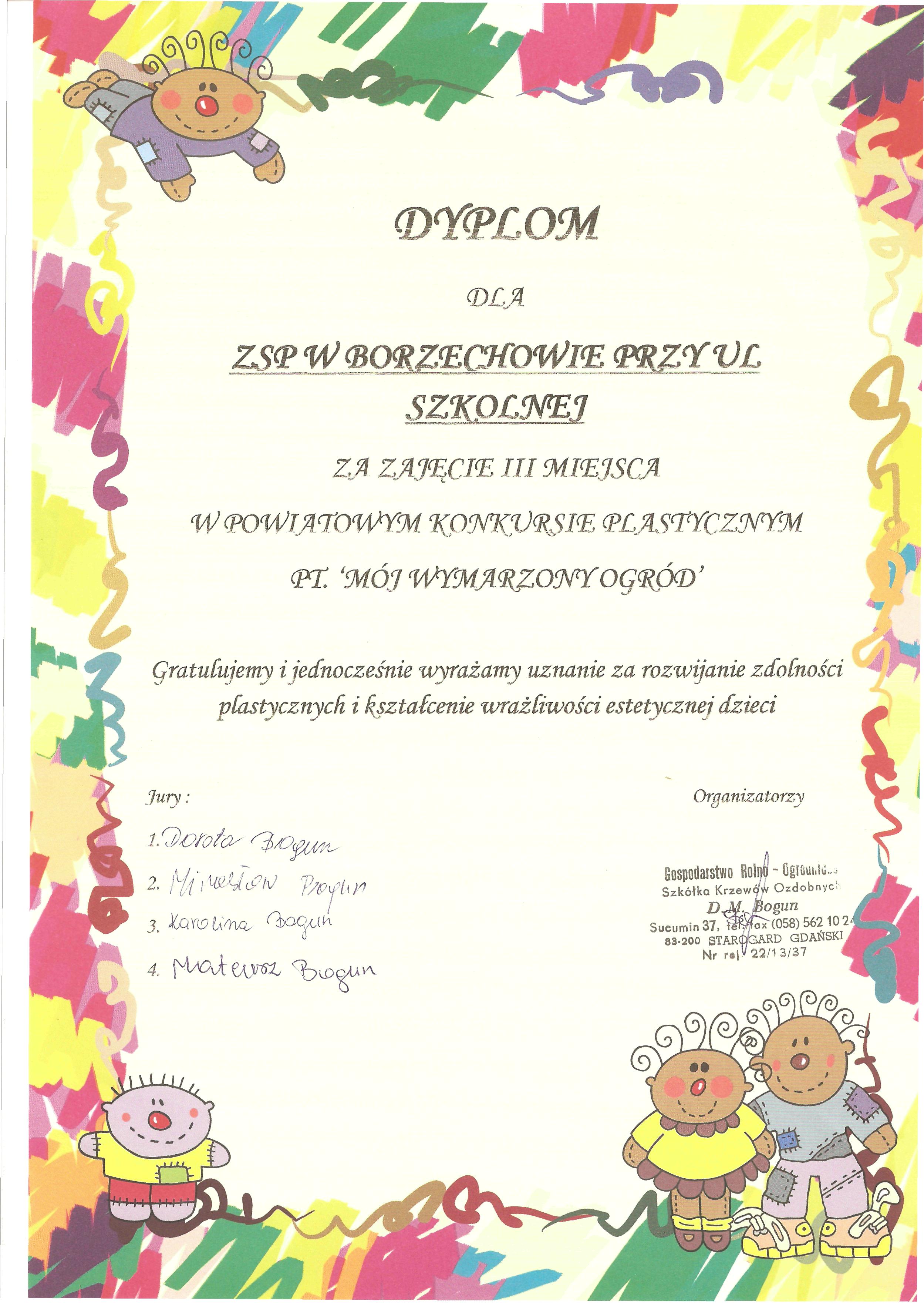 Uczniowie oddziału przedszkolnego zajęli III miejsce w powiatowym konkursie plastycznym pt. "Mój wymarzony ogród".