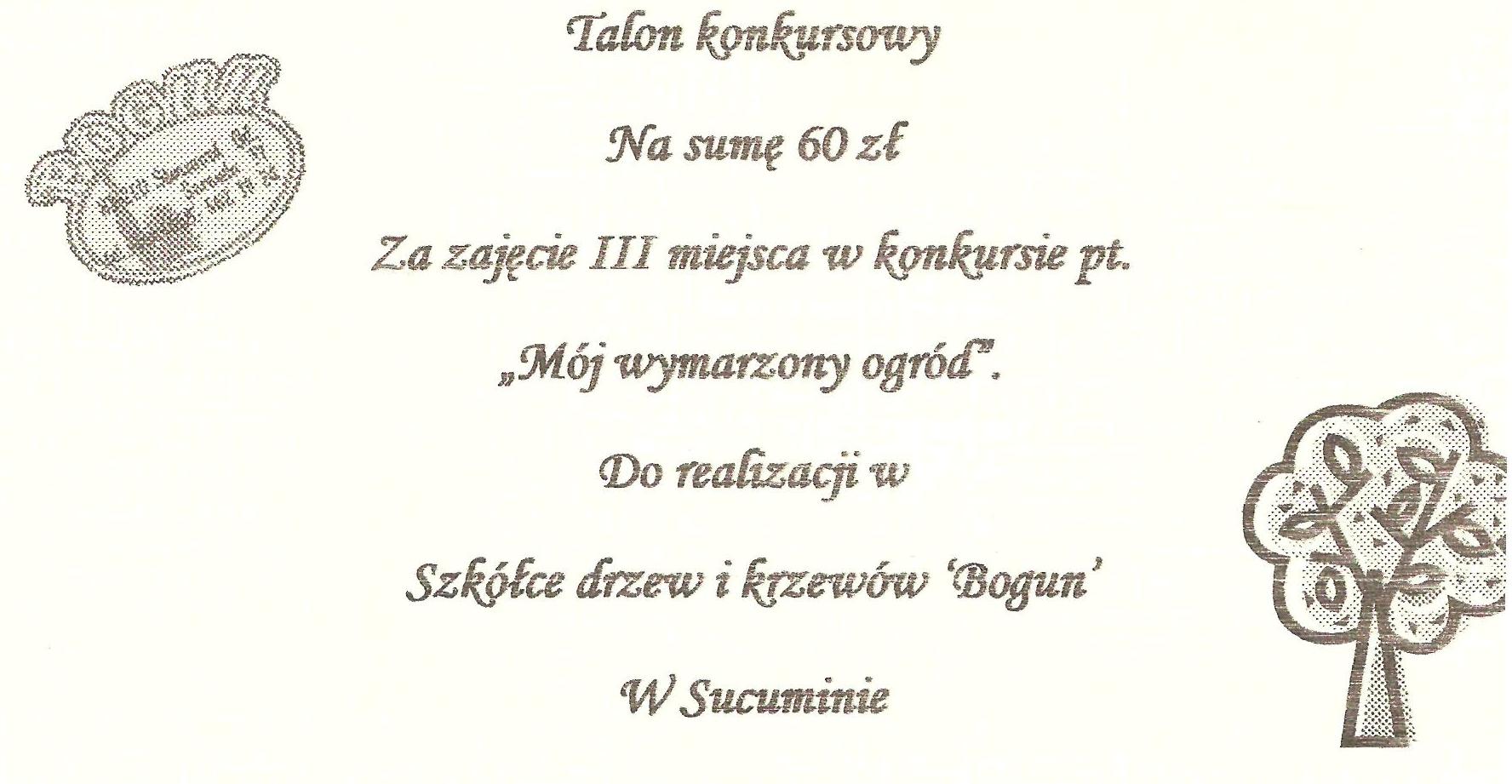 Dzięki przedszkolakom szkoła zdobyła talon do realizacji w Szkółce drzew i krzewów "BOGUN" w Sucuminie.