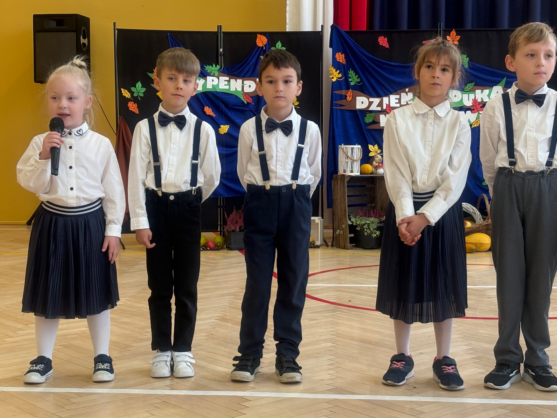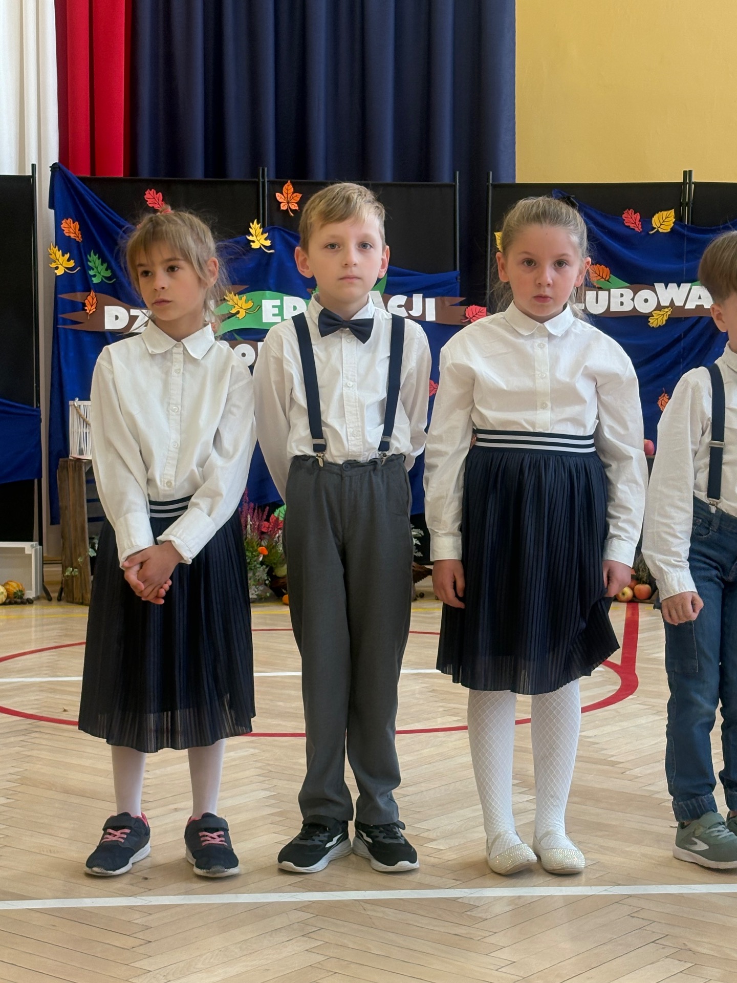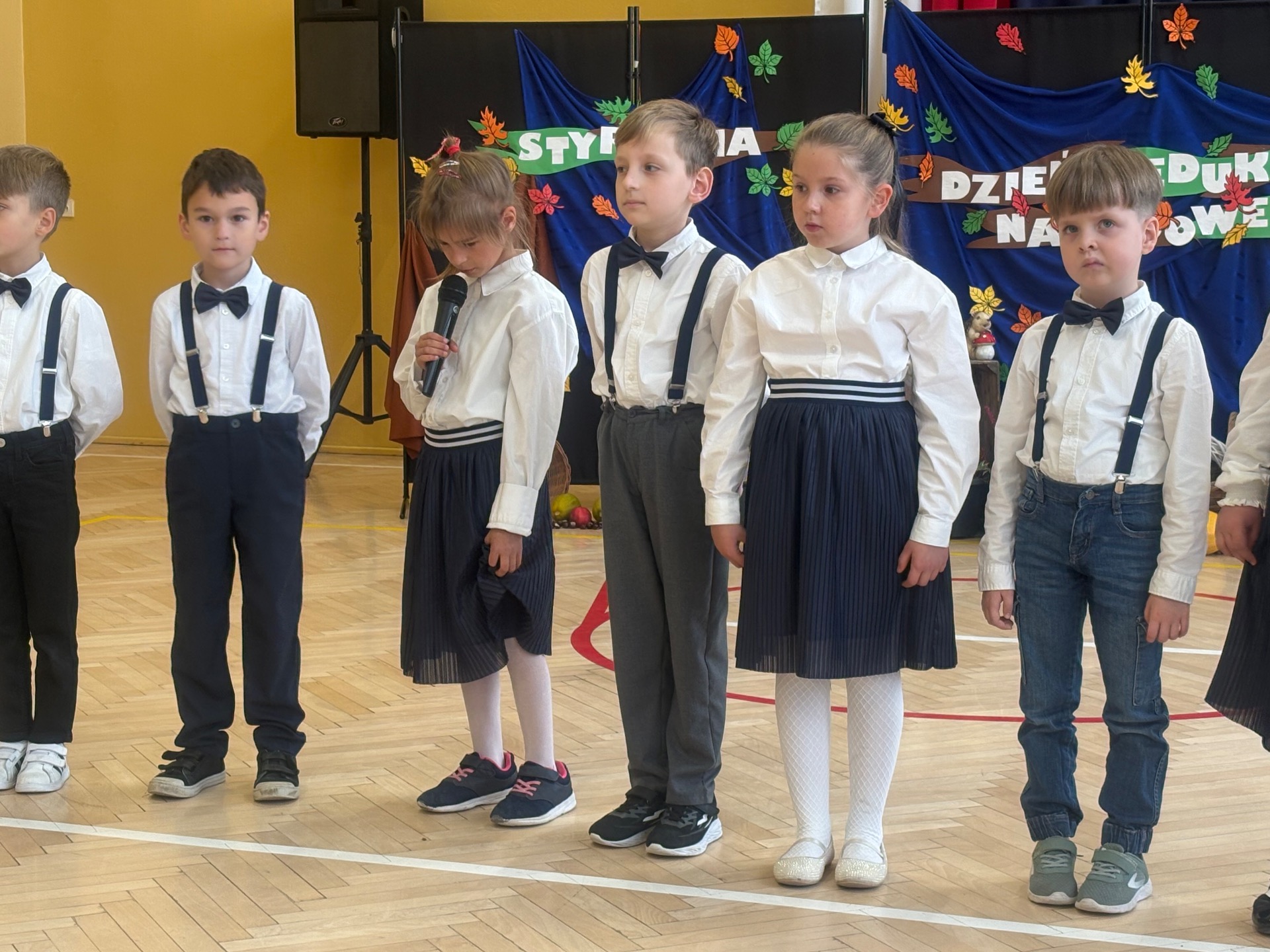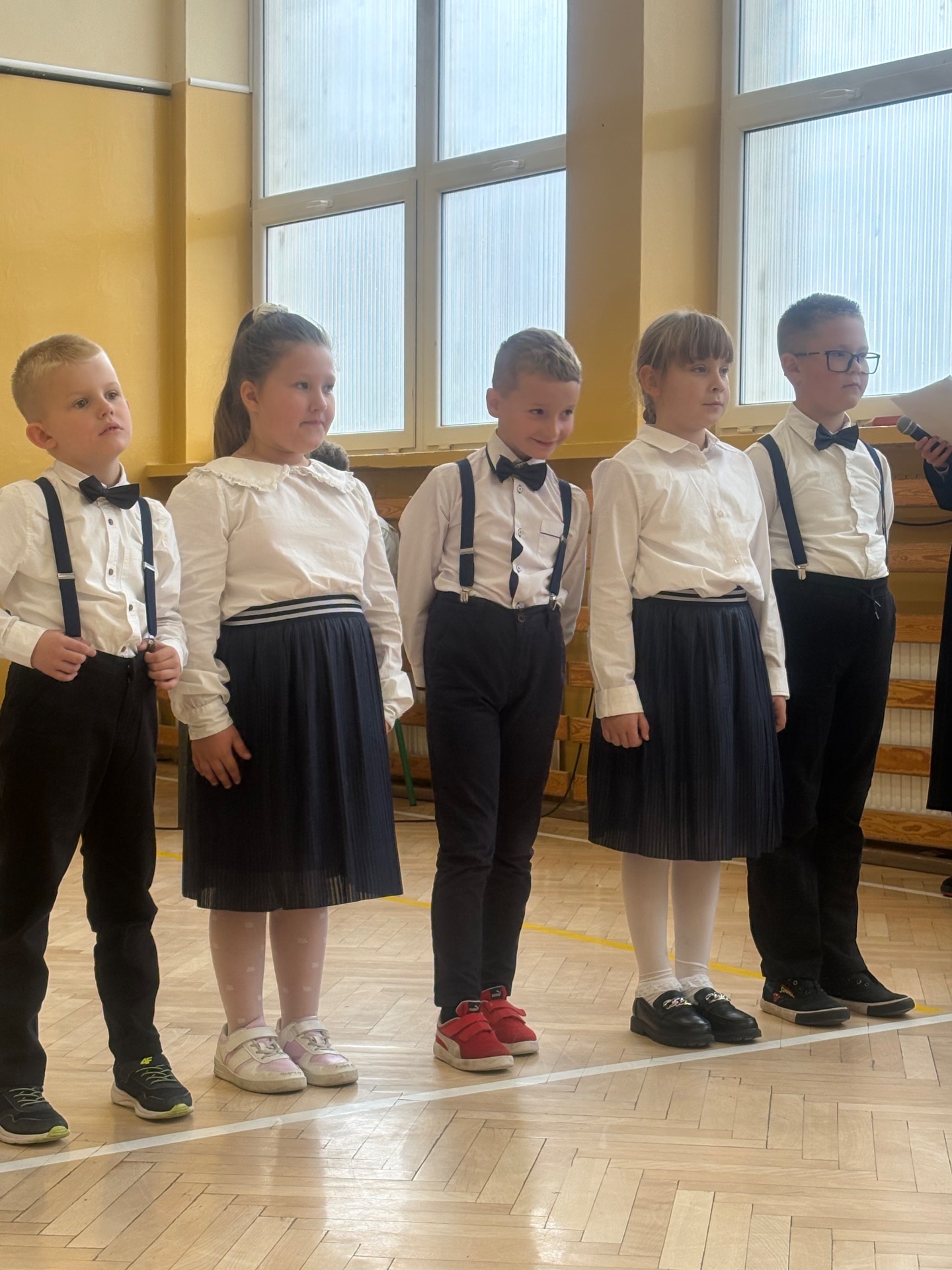 Pierwszoklasiści musieli udowodnić, że zasługują na miano ucznia naszej szkoły. Na początku zatańczyli poloneza. Potem udowodnili, że wiedzą, jak bezpiecznie przechodzić przez ulicę i kulturalnie się zachowywać. Wykazali się dużą wiedzą na temat naszej ojczyzny. Pięknie recytowali wierszyki i śpiewali wesołe piosenki. Otuchy, piosenką: „Nie ma czego się bać”, dodała pierwszoklasistom koleżanka z klasy 3, Maja Sender.
