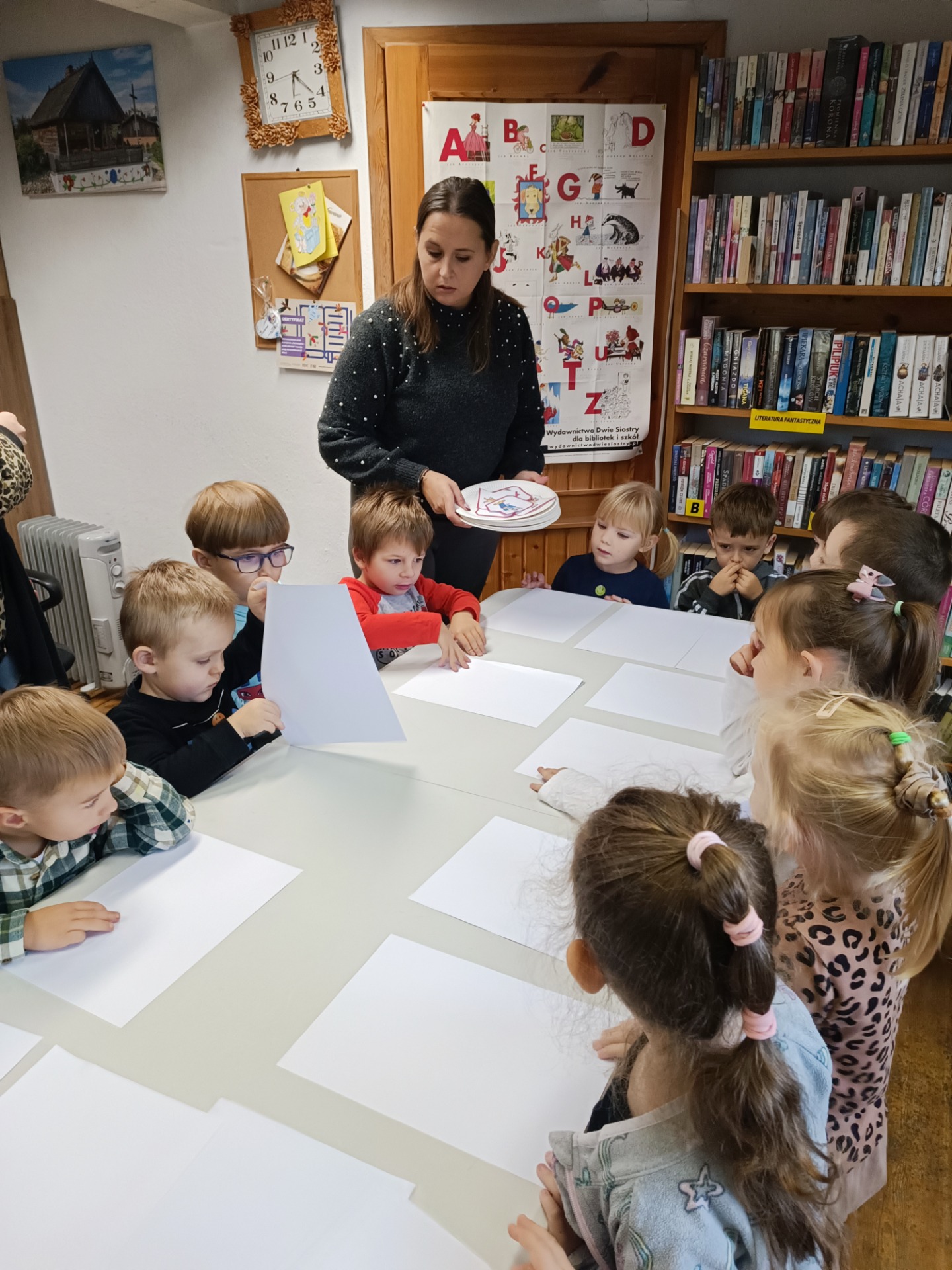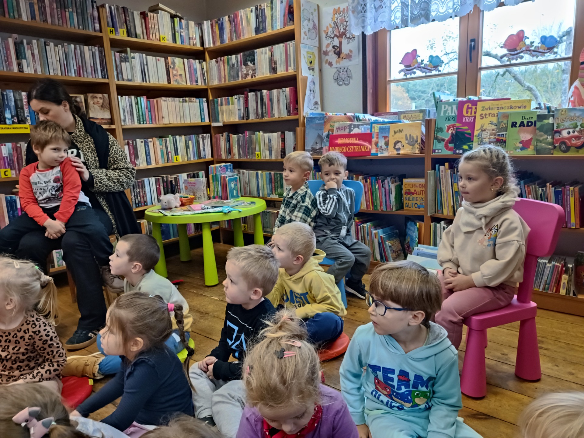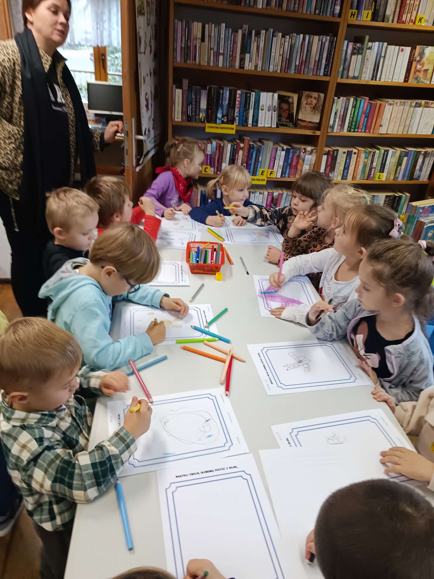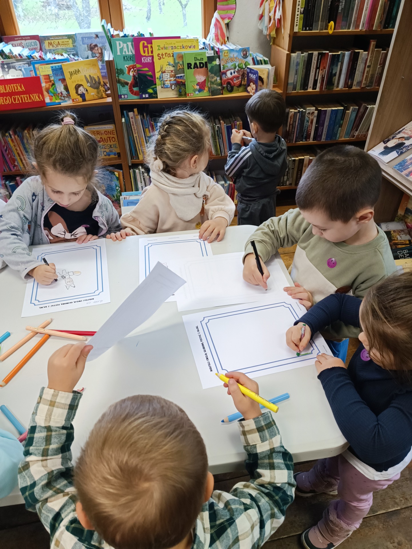 Z okazji Dnia Postaci z Bajek, najmłodsza grupa przedszkolna odwiedziła Bibliotekę w Borzechowie. Maluchy miały okazję zanurzyć się w świecie fantazji, odgadując bajkowe postacie i rozwiązując zagadki. Spotkanie w bibliotece uświetniło wspólne słuchanie bajeczki, a na zakończenie dzieciaki z zapałem wzięły udział w bajkowych zajęciach plastycznych, rysując swojego ulubionego bohatera. To był magiczny dzień w świecie książek!