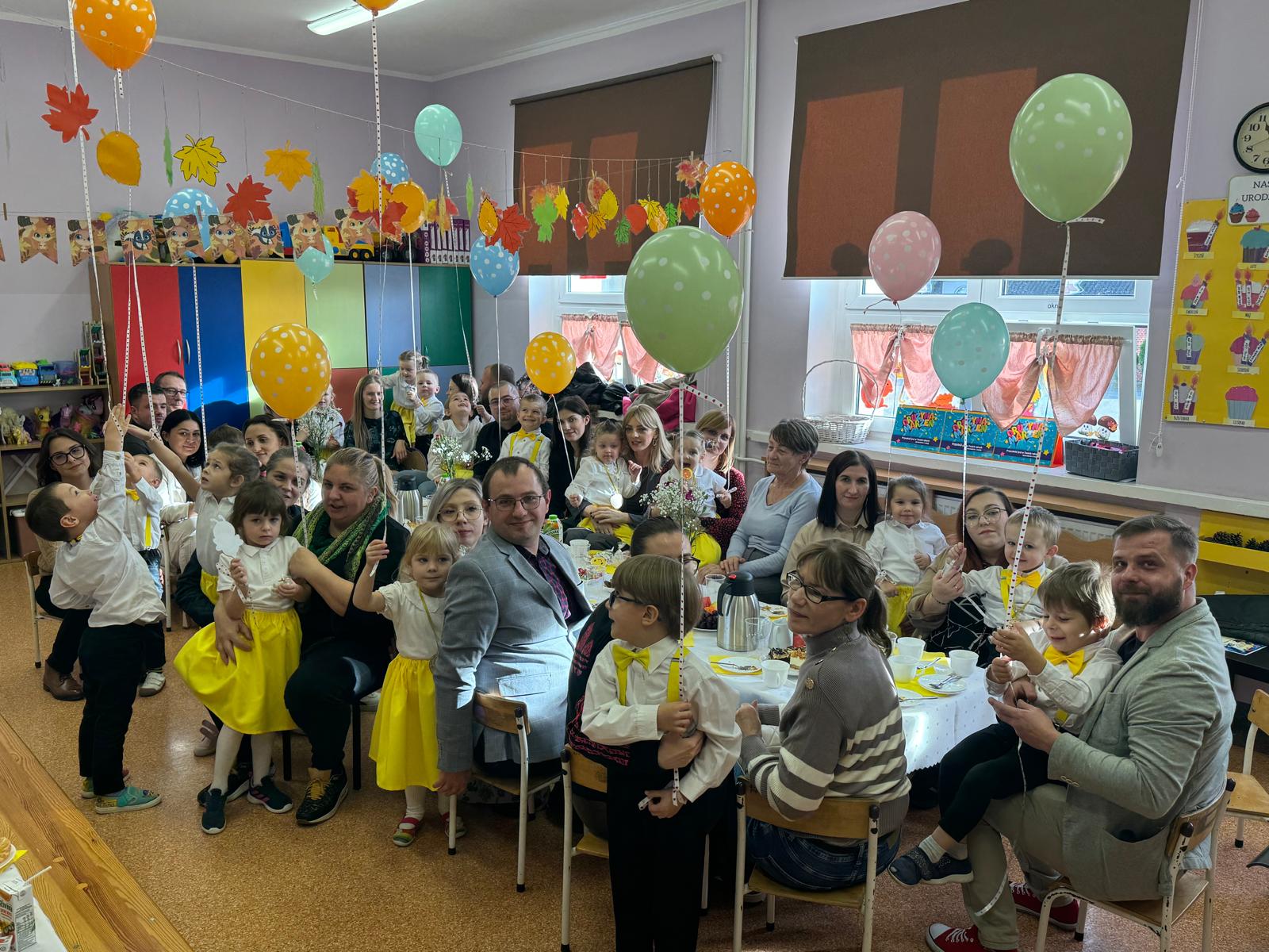 13 listopada był wyjątkowym dniem dla wychowanków Oddziału Przedszkolnego, dniem PASOWANIA NA PRZEDSZKOLAKA. To jedna z najbardziej wzruszających i symbolicznych uroczystości w przedszkolu. Ma niezwykłe znaczenie dla każdego dziecka, gdyż buduje poczucie przynależności do środowiska przedszkolnego, wzmacnia poczucie pewności siebie, pozwala zdobywać nowe doświadczenia oraz przeżywać radość z wspólnego przebywania w gronie najbliższych. Dla dzieci, to pierwszy ważny egzamin w życiu, dla rodziców – moment pełen dumy i emocji, a dla nauczycieli – potwierdzenie, że najmłodsi dobrze odnajdują się w nowym środowisku. Tego dnia dziewięcioro dzieci z trzech grup zostało włączonych do społeczności przedszkolnej, poprzez symboliczny gest pasowania przez panią dyrektor Beatę Kornela. Dzieci otrzymały dyplomy, medale, a także drobne upominki. Przedszkolacy wraz z paniami długo przygotowywali się do tego wydarzenia. Wspólnie uczyli się wierszyków, piosenek oraz tańców. Nie zapominając przy tym o zasadach zachowania podczas występu. Do przygotowań włączyli się również rodzice, którzy pomogli w zorganizowaniu poczęstunku, dzięki czemu, po części artystycznej wszyscy mogli świętować przy wspólnym stole.