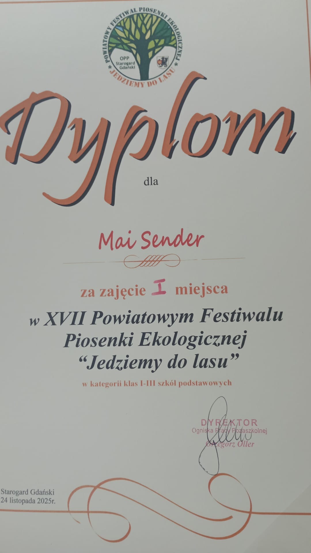 Zajęła I miejsce w Festiwalu Piosenki Ekologicznej "Jedziemy do lasu".