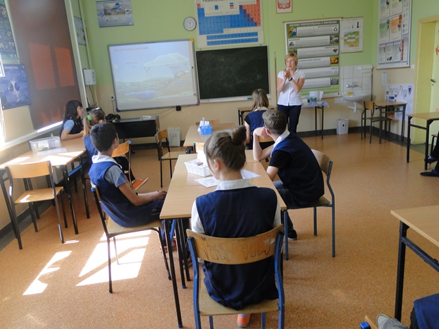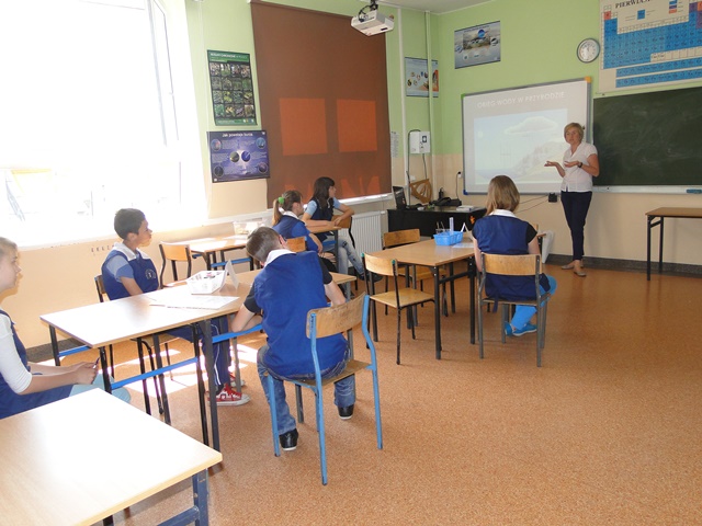 Zajęcia przebiegały w miłej i twórczej atmosferze. Utrwaliliśmy i przypomnieliśmy informacje dotyczące właściwości fizycznych i chemicznych wody, w jaki sposób człowiek ją zanieczyszcza i oczyszcza. Ułożyliśmy obieg wody w przyrodzie, na którym umieściliśmy przemiany fizyczne stanów skupienia wody wraz ze zmianą temperatury (sublimacja, resublimacja, topnienie, parowanie, krzepnięcie). Poznaliśmy strukturę gleby i jej właściwości. Już wiemy dlaczego zimą nie posypywać chodników solą kuchenną J.