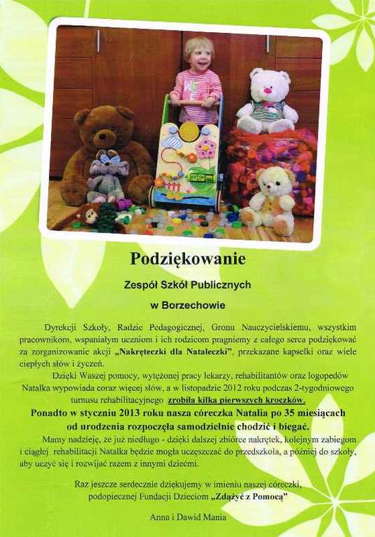 Kilka dni temu otrzymaliśmy podziękowanie, które bardzo nas ucieszyło. Oto treść podziękowania: