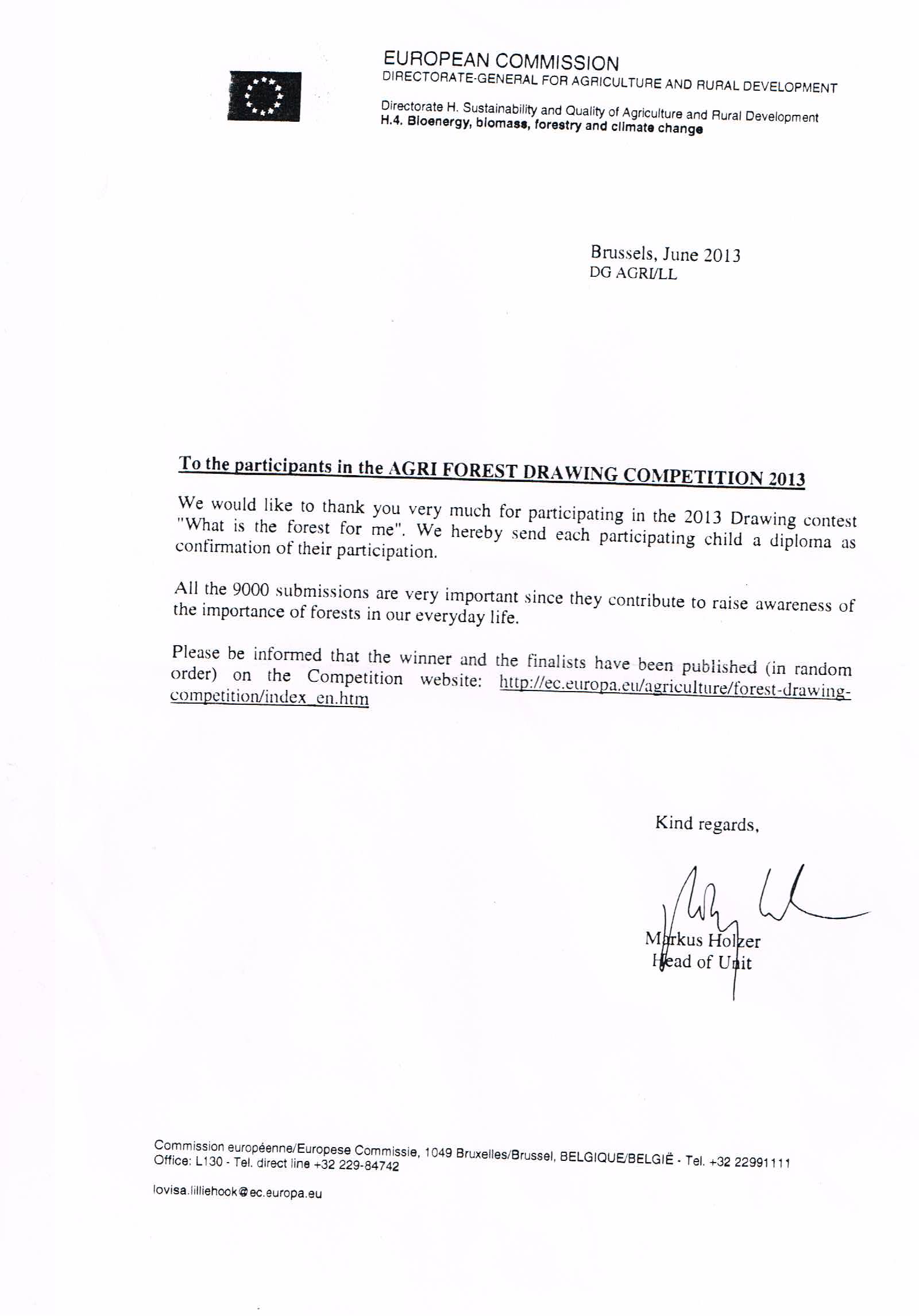 Niespodziewanie, pod koniec wakacji, nadeszła z Brukseli wiadomość. Wraz z podziękowaniem przesłane zostały dyplomy za udział w konkursie: dla szkoły i klas I, II i III szkoły podstawowej.
