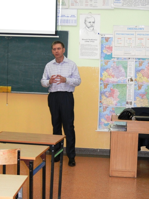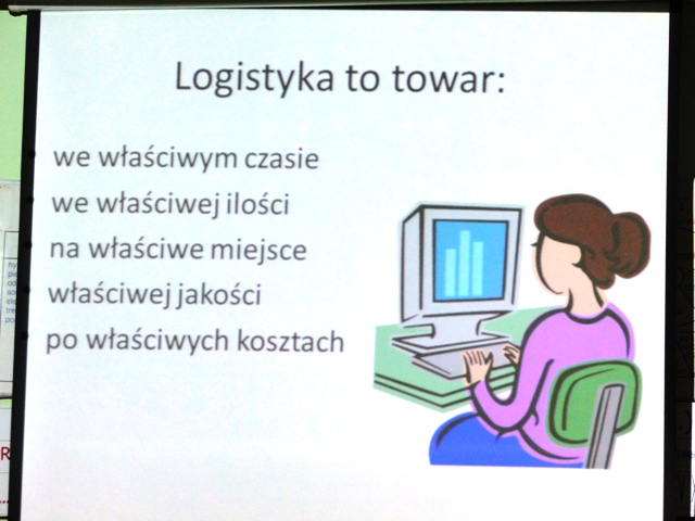O godzinie 11.00 do naszej szkoły przyjechał pan prof. Artur Halbe, by zapoznać nas z zawodem logistyka. Dzięki prezentacji łatwiej było nam zrozumieć, czym zajmuje się taka osoba oraz jakie pełni funkcje w firmie. Dowiedzieliśmy się o zaletach tego zawodu. Cała klasa była bardzo zainteresowana i wręcz zafascynowana wiedzą naszego gościa. Po skończonej prezentacji mieliśmy okazję, by móc zadawać panu Arturowi wszelkie pytania w tym zakresie. Po godzinnych warsztatach rozstaliśmy się z naszym gościem i podekscytowani poszliśmy na lekcję.