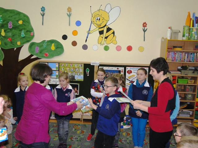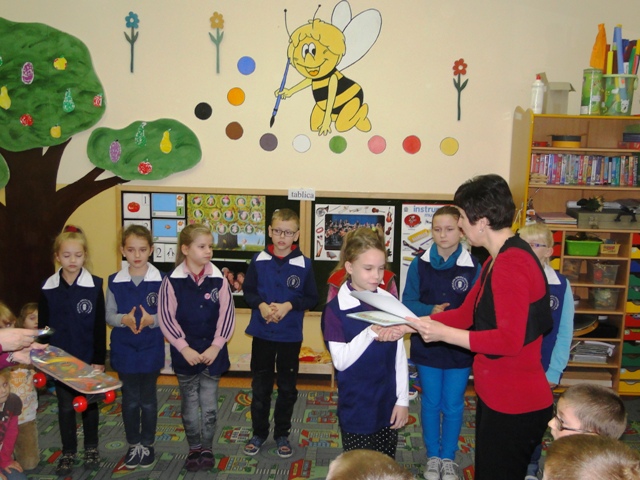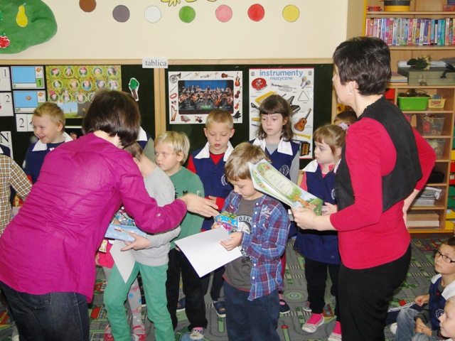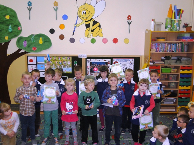 Nagrodzeni otrzymali upominki, które umilą długie jesienne wieczory np.: deskorolki, kolorowe koraliki do nawlekania, piłki, kolorowe kostki do nauki alfabetu. Wszyscy uczestnicy otrzymali także słodycze. Pani Beata Kornela pochwaliła ,,małych artystów” za wspaniałe występy i zachęciła do wzięcia udziału w konkursie w przyszłym roku.