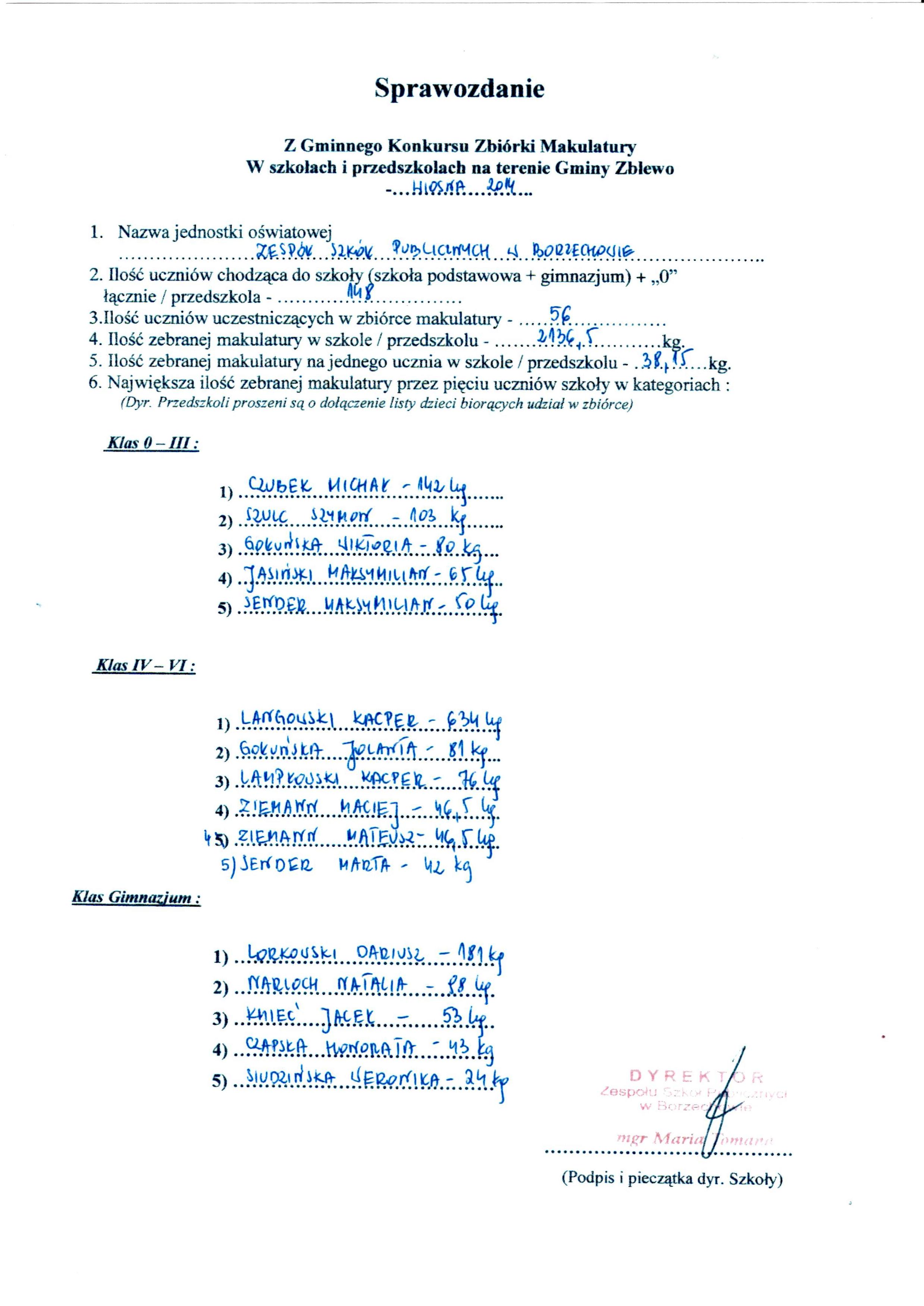 GMINNY KONKURS ZBIÓRKI MAKULATURY- sprawozdanie